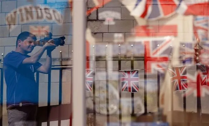 De eerste fans bemachtigden hun plekje langs de route, toeristen maakten zelf alvast de koetstocht van Harry en Meghan, en politieagenten gingen - in de stilte voor de storm - alvast even op de foto met 'Meghan en Harry'. De winkels puilen uit van de memorabilia, de hotels zijn volgeboekt... Windsor is klaar voor de grote dag. En dat ziet er zo uit.