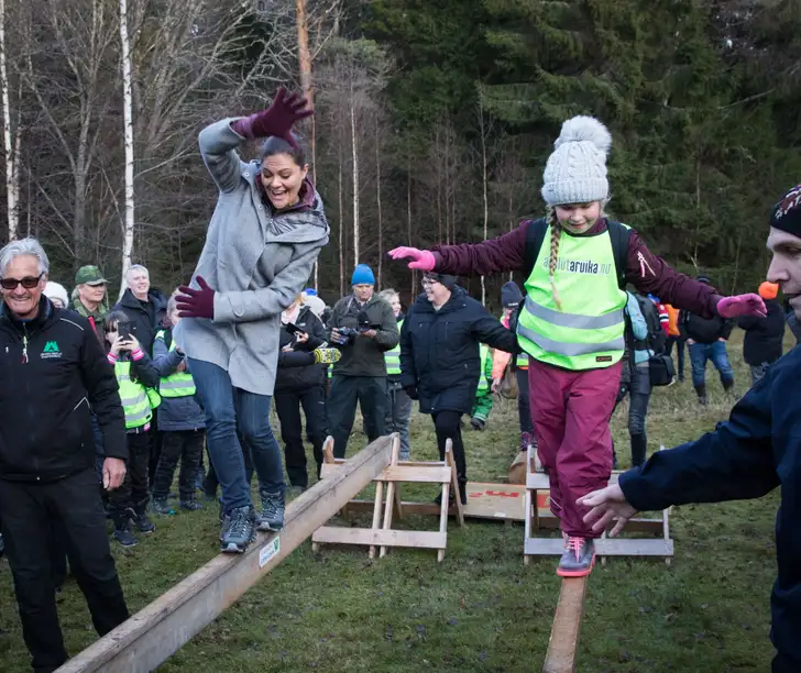 Tijdens een bezoekje aan natuurreservaat Glaskogen in het Zweede Vaermland deed de prinses niet alleen mee aan een wandeling, ze wilde ook graag deelnemen aan alle kinderactiviteiten. En dus ook een salto doen, net zoals de verzamelde kleintjes. Het leverde prachtige plaatjes op.