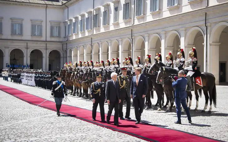 Koning Willem-Alexander is vanmorgen samen met koningin Máxima in Rome begonnen aan een staatsbezoek aan Italië. Gastheer is president Sergio Mattarella, die de Nederlandse gasten ontvangt in het Palazzo del Quirinale.