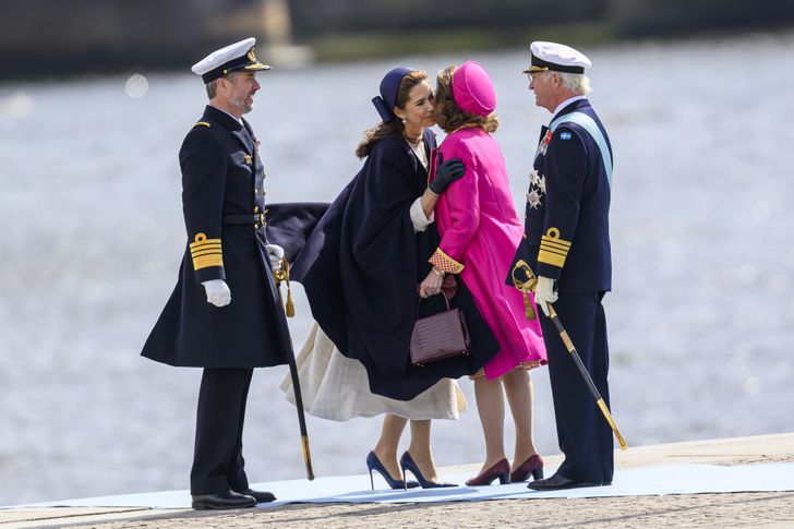 De Dannebrog, het geliefde royal schip van de Denen, streek gisterochtend neer in Stockholm, waar ze niet alleen werden ontvangen door koning Carl Gustaf en koningin Silvia, maar ook kroonprinses Victoria en manlief prins Daniël waren van de partij.
