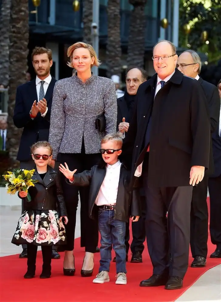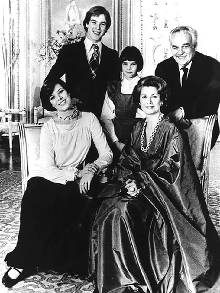 Als puber met zussen Caroline en Stéphanie en hun ouders