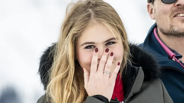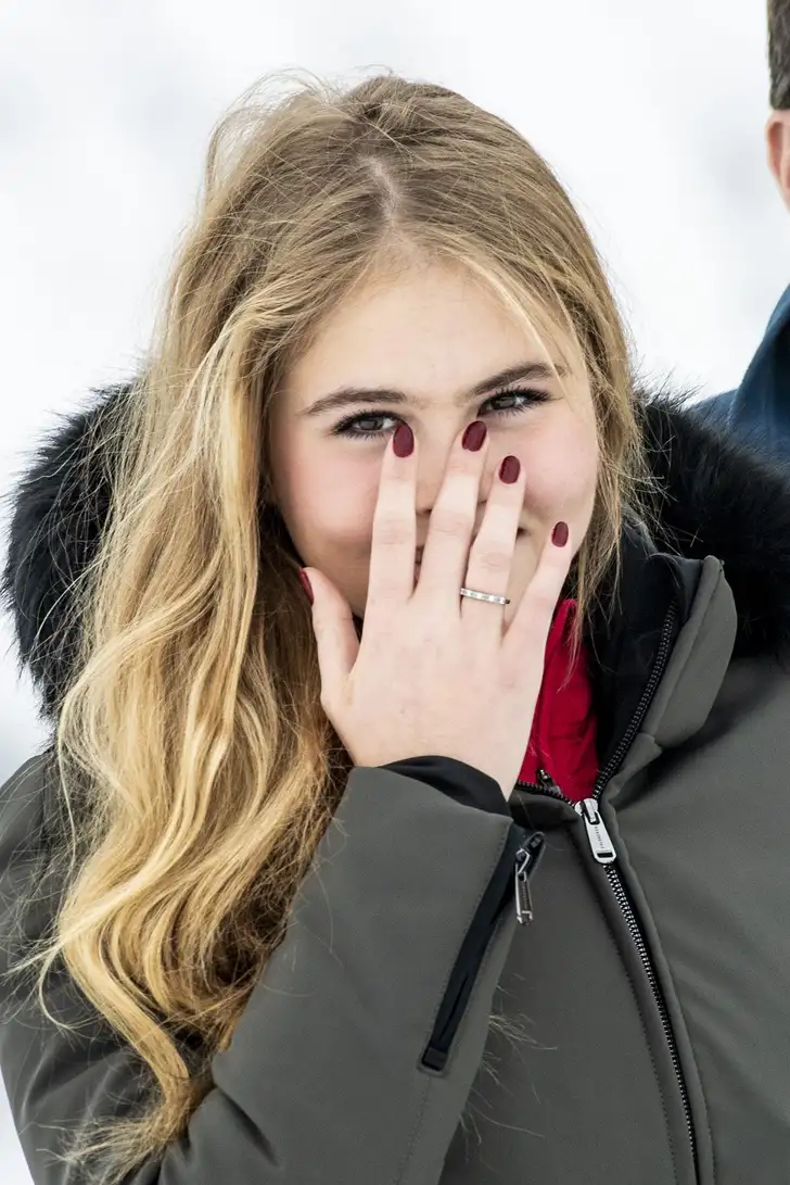 Prinses Amalia liet bij de sessie in Lech zien dat ze als enige van het hele gezelschap had begrepen dat zo'n foto een beetje kleur nodig heeft. En dat rood? Het lijkt verdacht veel op de lak die koningin Máxima heel vaak draagt. Je ziet voor je hoe dat gaat: 'Mam, ik pak even je potje, oké?'
