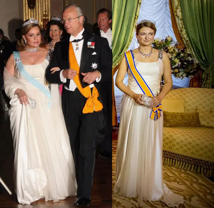 Kampioen in kleding van haar schoonmoeder lenen is kroonprinses Stéphanie van Luxemburg...