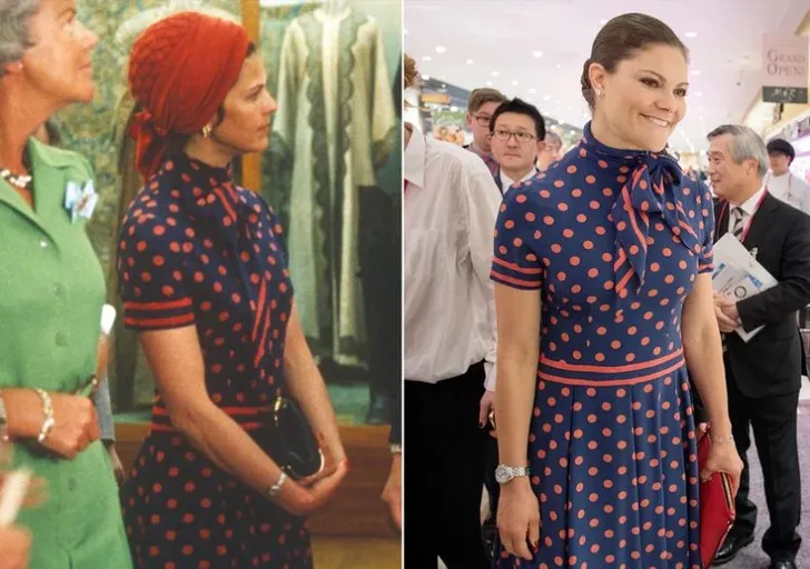 Ook kroonprinses Victoria van Zweden komt regelmatig even wat lenen bij haar moeder zoals dit polkadotje...