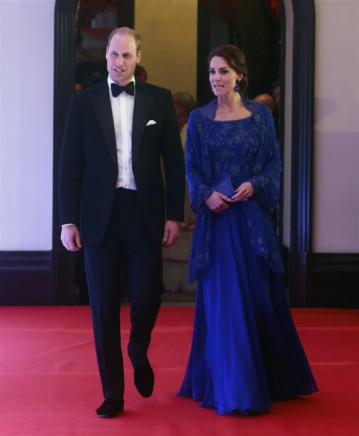 …als opwarmertje van een Royal Tour door India in 2017: dit koningsblauwe beeldje is van Jenny Packham.