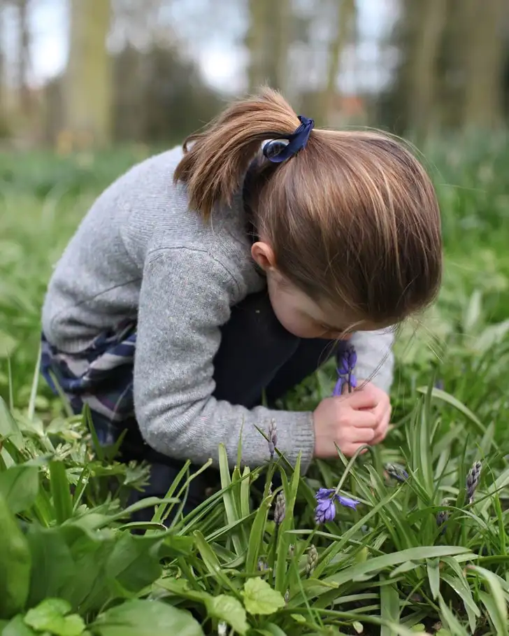 Vooruit: nog één lief detail bij een foto die Kate van haar dochter maakte en vrijgaf na de podcast: "Ik heb een foto van Charlotte die aan een blauwklokje ruikt en voor mij zijn het echt dit soort momenten die zoveel voor me betekenen als ouder en ik probeer in elke dag zulke momenten te stoppen, hoe klein ook."