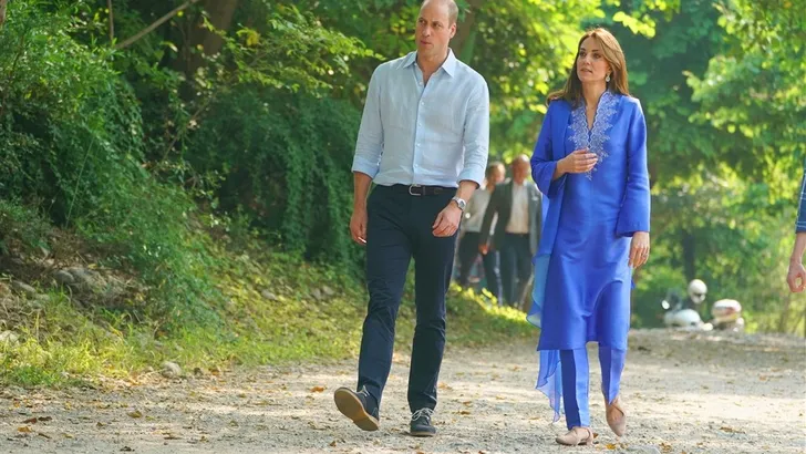 Kate droeg een shalwar kameez ontwerp in korenbloemblauwe zijde van Pakistaanse ontwerper Maheen Khan.