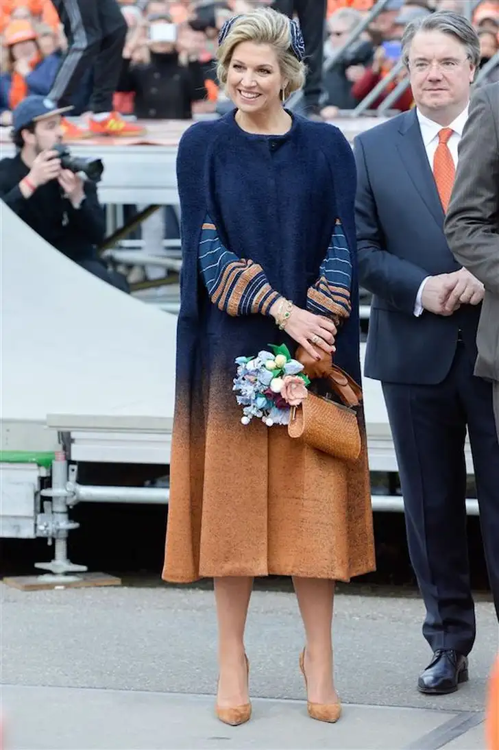 Ik ben onder de indruk van de blauwe jas/cape die Máxima droeg op Koningsdag 2017. Een monument, eenvoudig van vorm en een dessin aflopend van de nacht naar de zon. Spannend en minimaal maar een enorme eyecatcher.