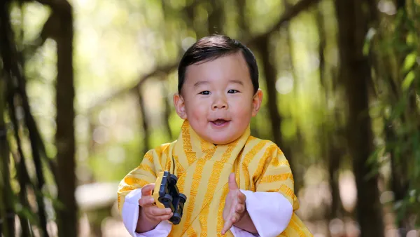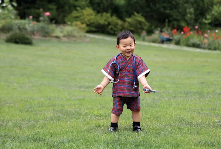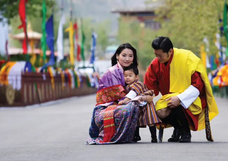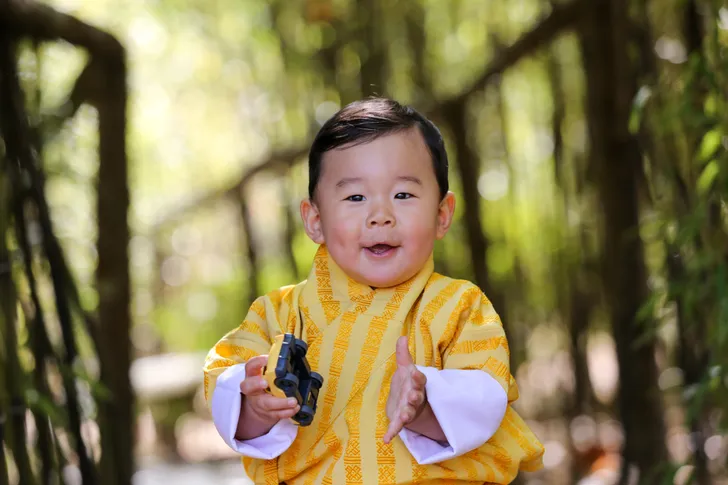 Trotse ouders willen nou eenmaal graag met hun kindjes pronken. Ook als ze tot het koninklijk huis behoren. Zo ook de koning en koningin van Bhutan. Ze hebben groot gelijk. Hun drakenprinsje (zo wordt-ie echt genoemd in zijn thuisland) Jigme van één is om op te vreten.