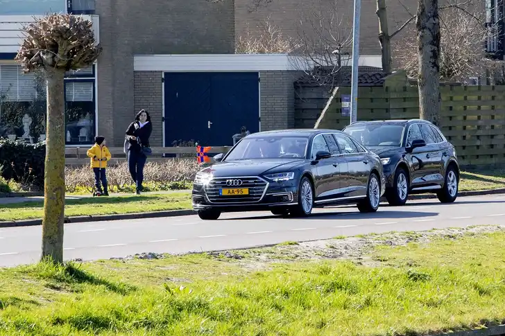 ... als prinses Beatrix stekkeren qua dienstauto. Ze ruilden hun auto met traditionele verbrandingsmotor in voor een exemplaar met een plug-in verlengde hybride (voor wie het wil weten: een Audi A8 60 TFSI e quattro). Helemaal elektrisch rijden lijkt nog niet haalbaar in verband met verre werkbezoeken: vermoedelijk hebben ze geen zin om onderweg onder de nodige belangstelling op te laden als de accu kwijnende is.