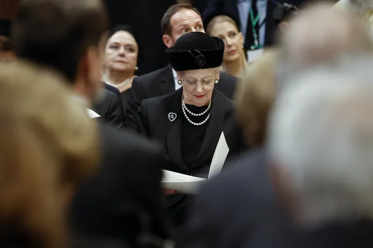 Koningin Margrethe en prinses Benedikte waren er als zussen van weduwe Anne Marie natuurlijk bij, en ook Margrethe’s zoons Frederik en Joachim (zonder hun echtgenotes) sloten aan.