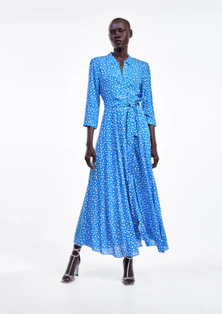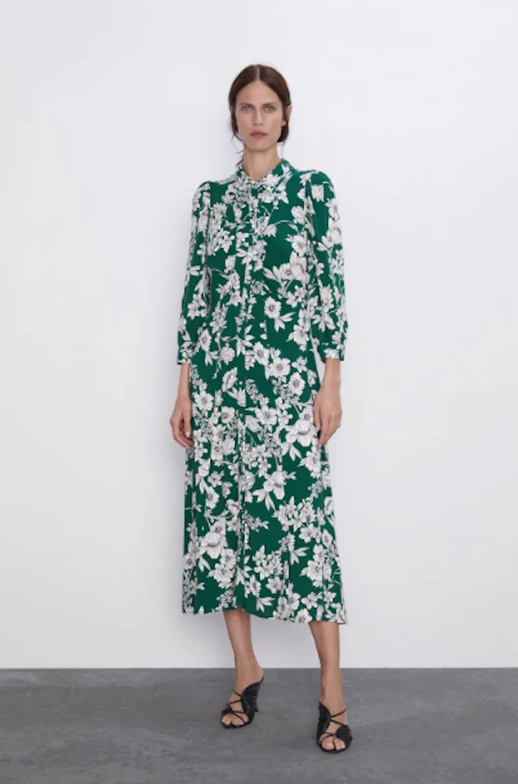 Het exacte model wat de Zweedse prinses droeg is helaas al uitverkocht bij de Spaanse modegigant. Maar er gloort hoop in de vorm van nog veel meer soortgelijke modellen met chique halslijn, knoopjes en prints. Stuk voor stuk voor onder de vijftig euro te shoppen. Herfstlook klaar!