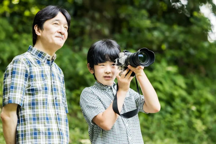 Hun broertje prins Hisahito is nu de tweede in lijn voor de troonopvolging. Links de kroonprins in casual wear.