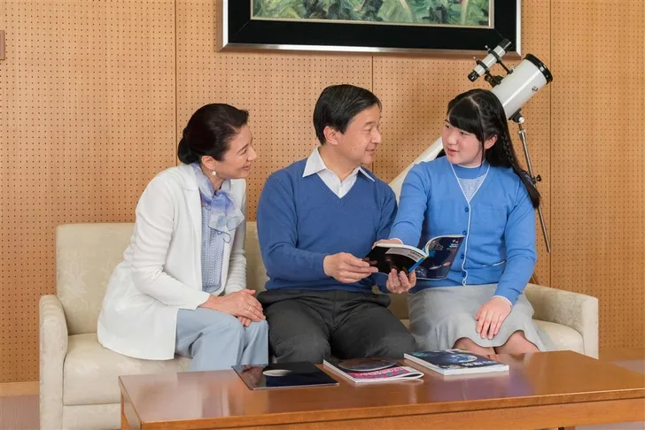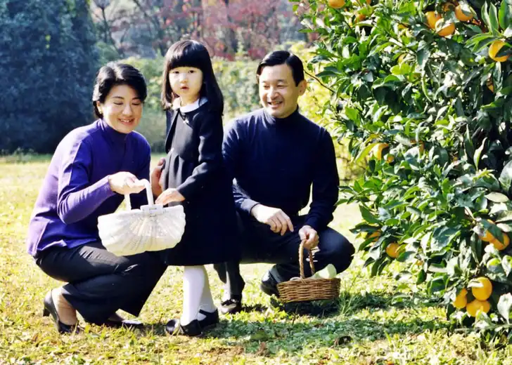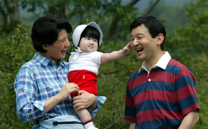 Bij de inhuldiging van haar vader was ze verrassend onzichtbaar. Dat komt omdat de Japanse monarchie momenteel de regel hanteert dat alleen jongens troonopvolger kunnen zijn. Een vrouw kan alleen keizerin worden door een huwelijk net de keizer. Niet handig, want toen Naruhito en zijn vrouw kroonprinses Masako na lang proberen eindelijk een dochter kregen - deze foto is uit 2002 - kon die dus geen troonopvolger zijn.