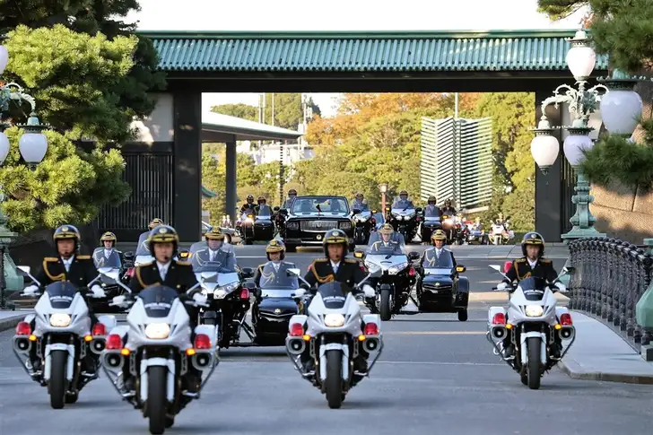 Het stel reed in een open Toyota Century met royal chrysantenzegel van het Keizerlijk Paleis naar het Akasaka Paleis, een rit van 4,6 kilometer. Langs de route stonden meer dan 100.000 mensen en 26.000 politieagenten.