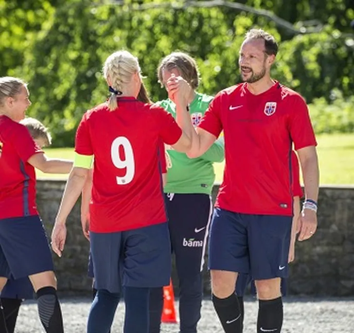 Samen met zijn vrouw Mette-Marit liet hij zich voor het goede doel verleiden tot een potje voetbal. Dat het sportieve paar nog won ook.