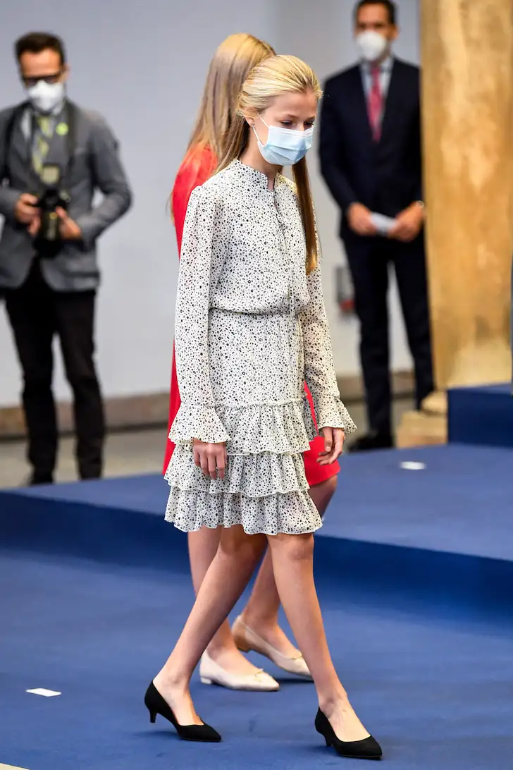 Toegegeven, ze zijn nog bescheiden. Maar ze zijn er wel: de eerste hakken van kroonprinses Leonor van Spanje, die op 31 oktober vijftien kaarsjes uitblaast. Twee keer werd zij de afgelopen dagen maar liefst gespot op hakjes. Want hoe lief mama Letizia ze ook heeft, haar dochters hebben er best lang op moeten wachten.