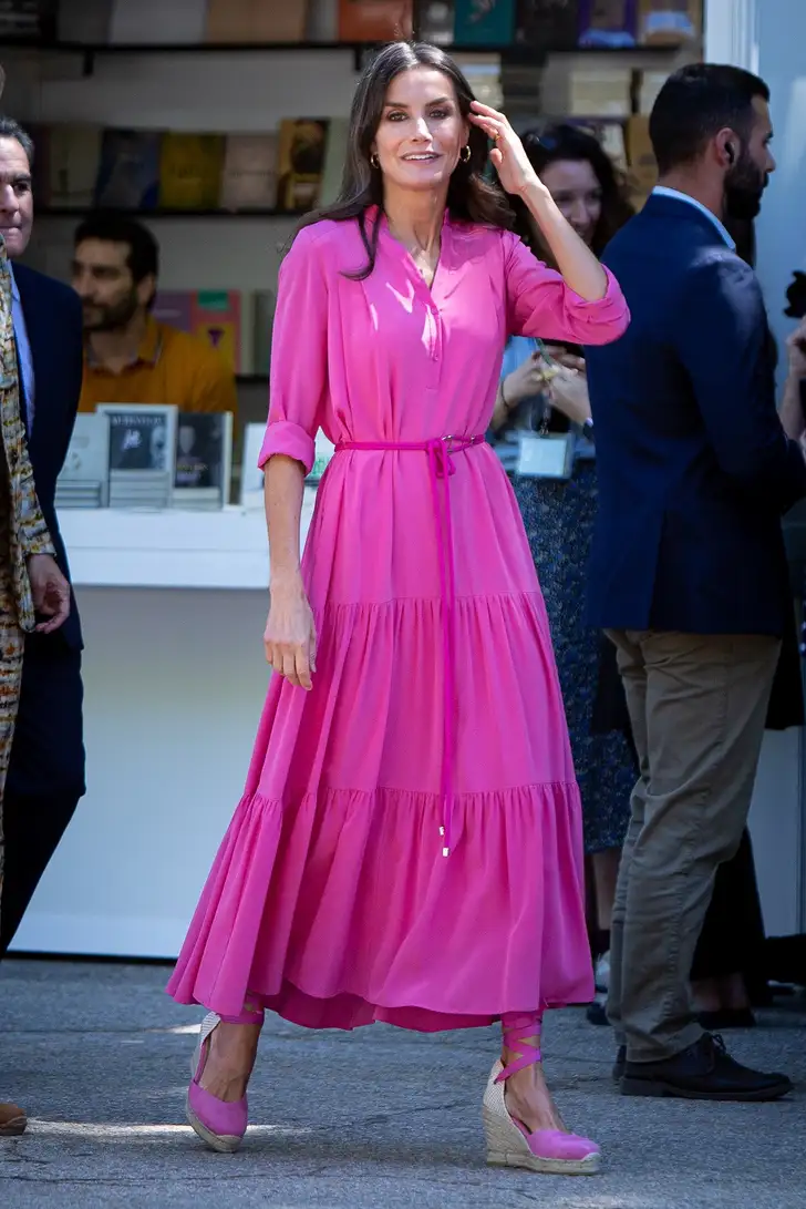 Koningin Letizia van Spanje heeft er een in het zuurstokroze. Een nonchalant ceintuur zet de slanke taille van de koningin mooi in de spotlights.