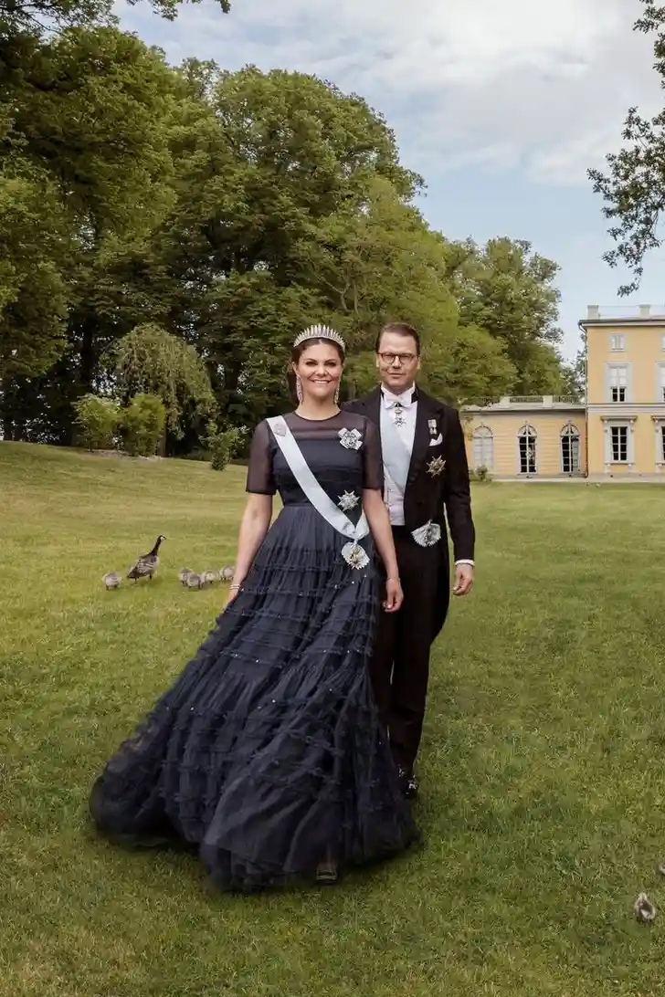 Kroonprinses Victoria van Zweden kiest voor maagdelijk wit en een kantje. De hooggesloten halslijn maakt de nonnenlook helemaal af.