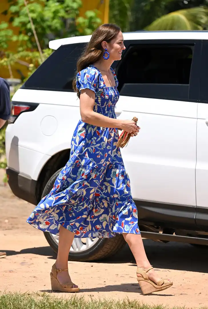 De lengte kan variëren van mini tot maxi. Catherine, de hertogin van Cambridge, kiest voor de gulden (?) middenweg met deze vrolijke bloemenjurk.