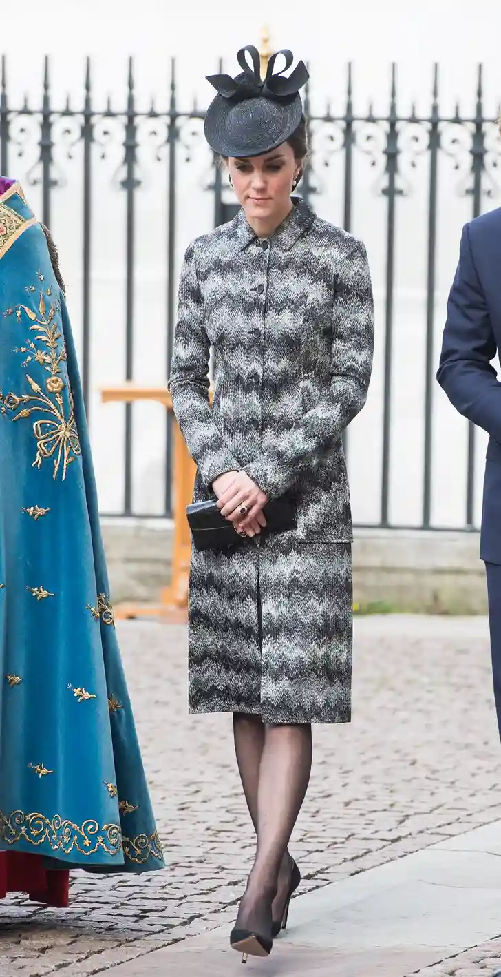 Onderstaande mantel is dat in ieder geval niet. Hertogin Kate en de andere, onbekende dame in kwestie droegen het ontwerp van Missoni bij precies dezelfde bruiloft. Hoe gênant!