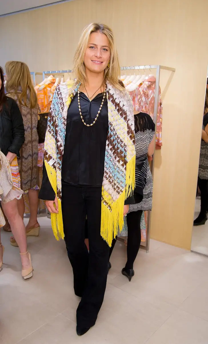 Gebreide sjaals kunnen - indien gewenst - ook een flinke snuf kleur aan een look toevoegen. Hier in beeld: prinses Tatiana van Griekenland.