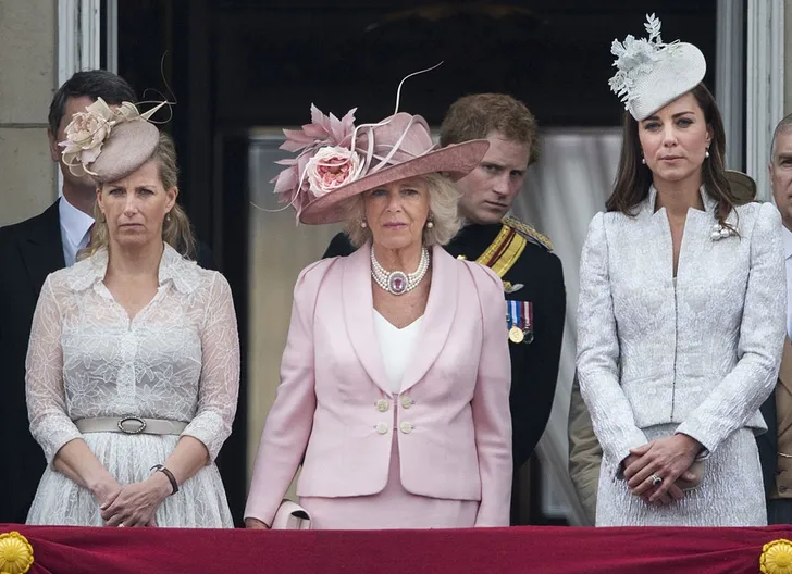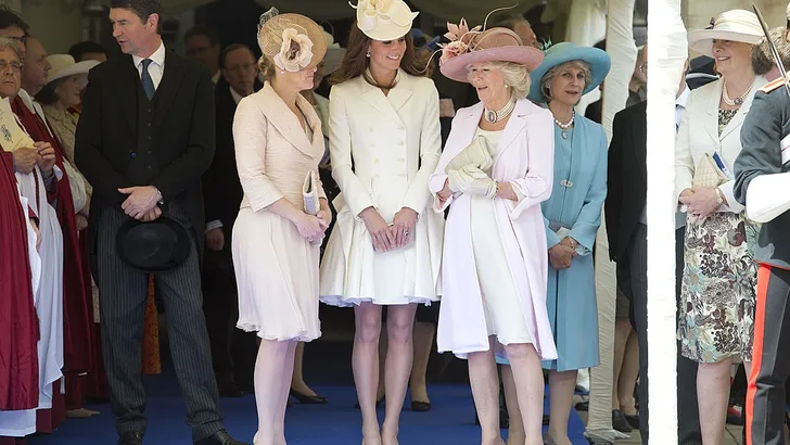 Sophie, de gravin van Wessex (de vrouw van prins Edward), was degene die Kate in haar verkering- en verlovingstijd het meest heeft geholpen met all things protocol. Ze zijn zeer close, Kate is ook dol op Sophie's dochter lady Louise (hier in het midden in 2012). Bij gezamenlijke optredens, zoals Trooping The Colour of het loopje naar de kerk zijn deze drie vaak samen te spotten.