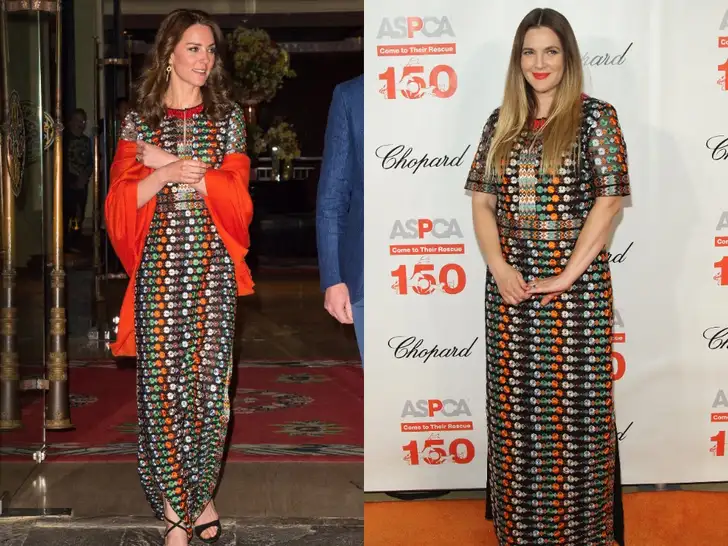 Dat het ook andersom kan werken bleek toen Kate haar misschien-wel-schoonzusje Meghan Markle leerde kennen. Die droeg in 2012 op de rode loper een prachtjurkje van Diane von Fürstenberg. Kate droeg de lange versie van dezelfde jurk twee jaar later.