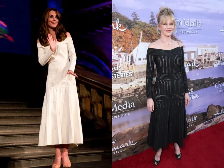 Drew Barrymore ging haar vorig jaar voor. Die koos haar Tory Burch-japon zonder het te weten een paar dagen later dan Kate. Tussen de copycatsessie van Melanie Griffith zat iets meer tijd: zij droeg een paar weken na Kate een kopietje van een royally goedgekeurd item uit Kate’s wasmand.