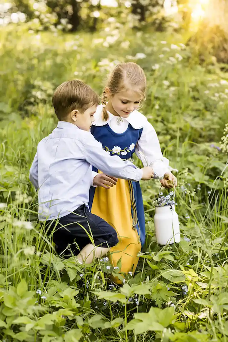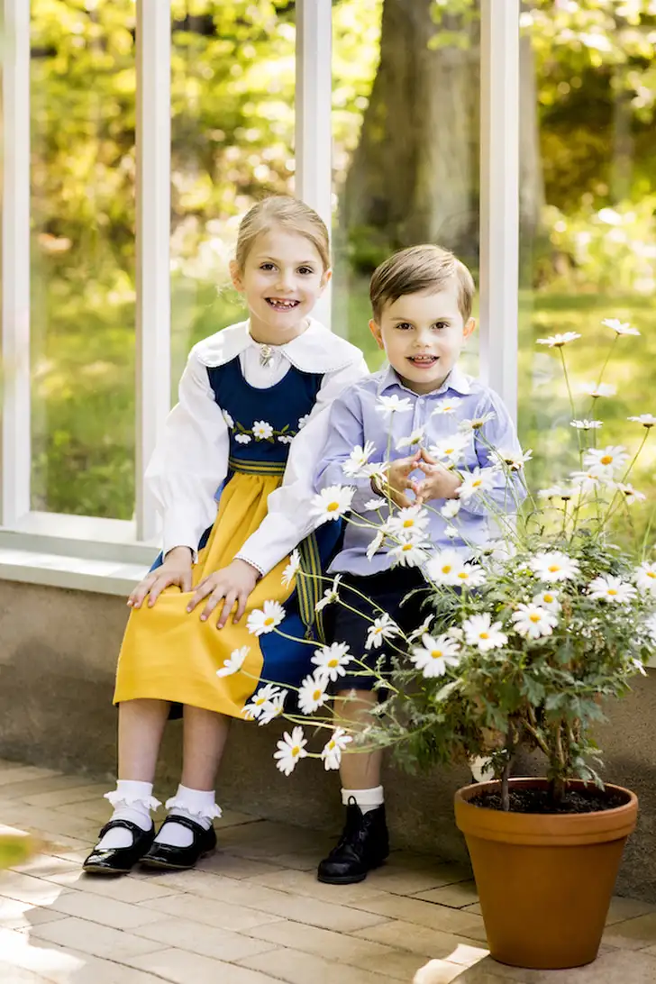 De Zweden zijn sterk in hun blauw-gele klederdracht, maar die komt natuurlijk nooit gezelliger uit de verf dan op de kleintjes van de royal family. In dit geval de kinderen van Victoria en Daniel: Estelle van 7 en Oscar van 3.