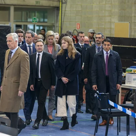 Filip en Elisabeth werden bij het bezoek begeleid door premier Alexander De Croo, door minister van Binnenlandse Zaken Annelies Verlinden en door Waals minister-president Elio Di Rupo.