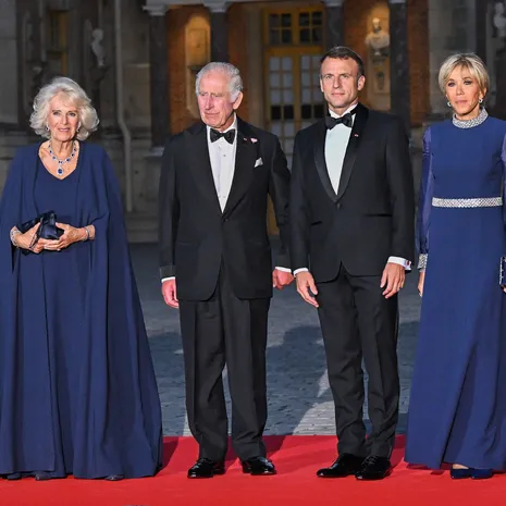 Voor de liefhebbers van royal glamour was het staatsbanket in de Spiegelzaal te Versailles het hoogtepunt. Camilla droeg Dior, een fraaie geste in Diplomatic Dressing naar het gastland. Ook Madame Macron droeg donkerblauw, het is nu eenmaal haar favoriete kleur.