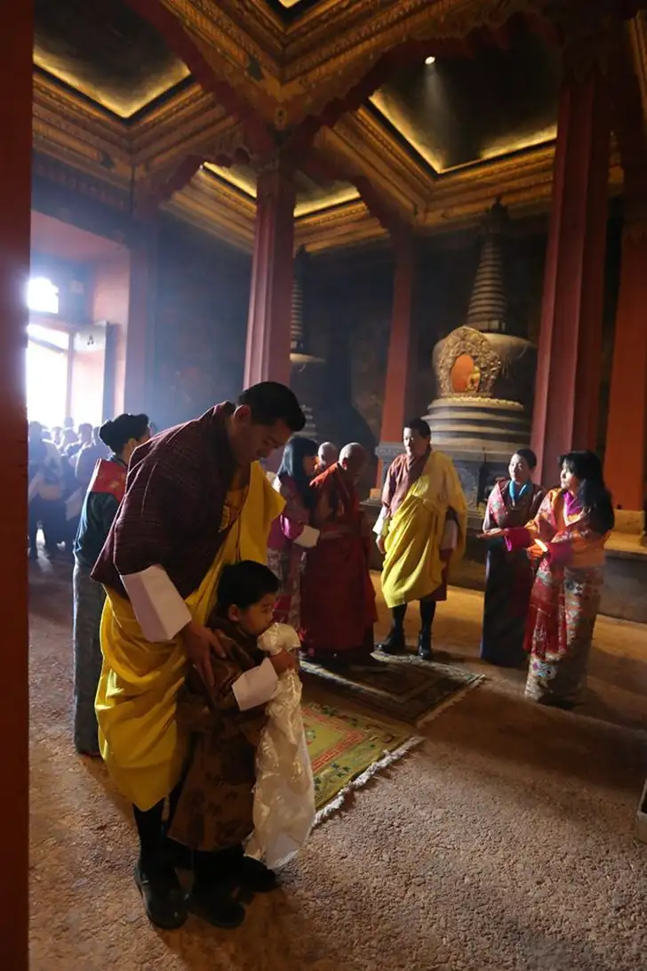 Vandaag werd de zwangerschap echter gevierd met een nieuw kiekje. Ter ere van het Losar festival (een nieuwjaarsfeest volgens de Bhutaanse kalender) is een foto vrijgegeven van koning Jigme Khesar Namgyel Wangchuck, een zichtbaar zwangere Jetsun Pema en natuurlijk prins Namgyel, genomen in de troonzaal van het Lingkana Paleis. Baby Bhutan zal dit voorjaar worden geboren.