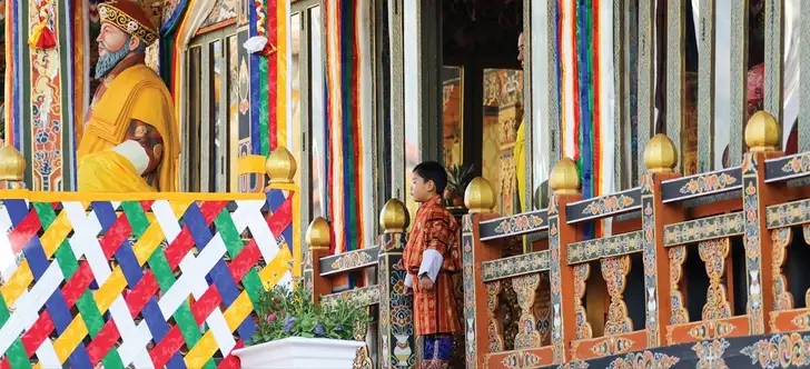 Wát in een lief buikje in de Troonzaal van Bhutan.