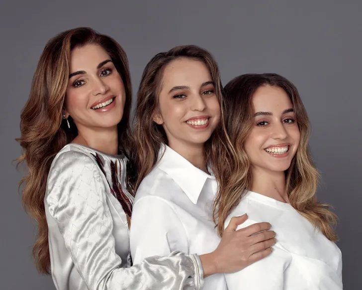 Koningin Rania zegt over Iman en Salma: "Als ik mijn meisjes in de buurt heb, zijn liefde en gelach nooit ver weg. Ik ben erg trots dat ze hun eigen weg weten te vinden." Iman studeert in Amerika, Salma zit bij de luchtmacht.