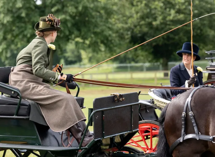 Nieuwe rangorde: moeder Sophie, gravin van Wessex, in het kleine rijtuig en haar dochter Lady Louise in het grote. "Ik ben zo trots op haar, ze heeft hier eindeloos voor getraind," zegt ze over Lou.