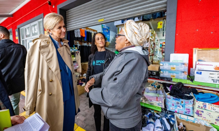 Naast de feestelijke uitspattingen stond er ook serieus werk op het programma. Gehuld in een trenchcoat over haar pak bracht Máx een bezoek aan lokale initiatieven die bijdragen aan financiële weerbaarheid. In een township ging ze in gesprek met bewoners over hun deelname aan zogeheten stokvels – informele spaargroepen die van groot belang zijn in gemeenschappen met lage inkomens.