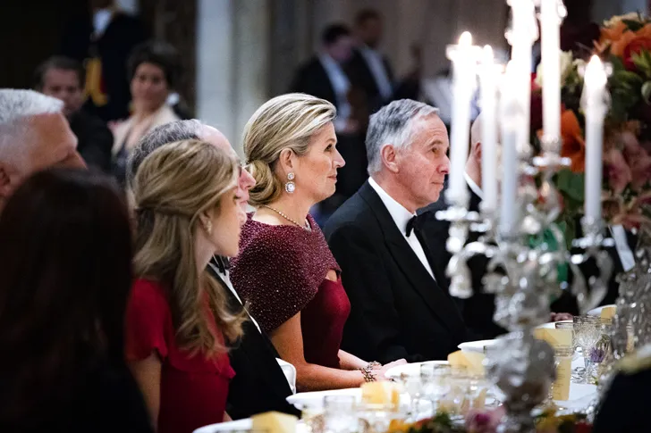 Zoals gewoonlijk bij dit soort gelegenheden nam het koningspaar niet de moeite voor een fatsoenlijk fotomoment zoals de collega's in Zweden, Noorwegen, Denemarken, België, Engeland en Spanje dat wel doen. Gemiste PR-kans, maar hier zie je de jurk nog even in zijn geheel zoals HM 'm droeg in 2019.