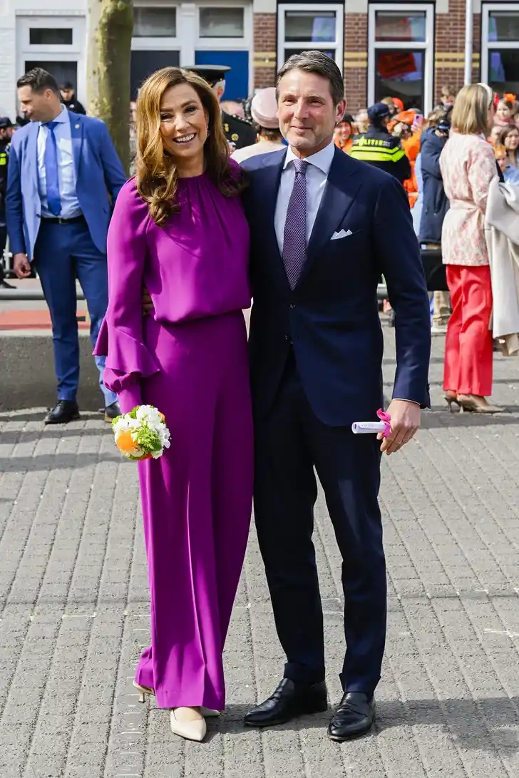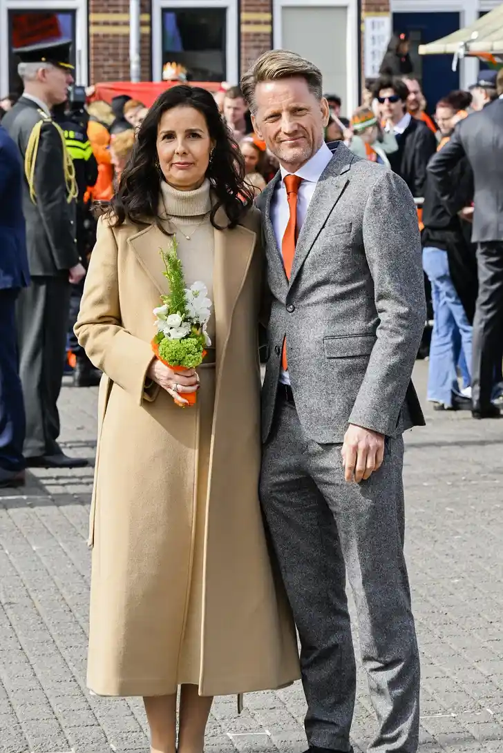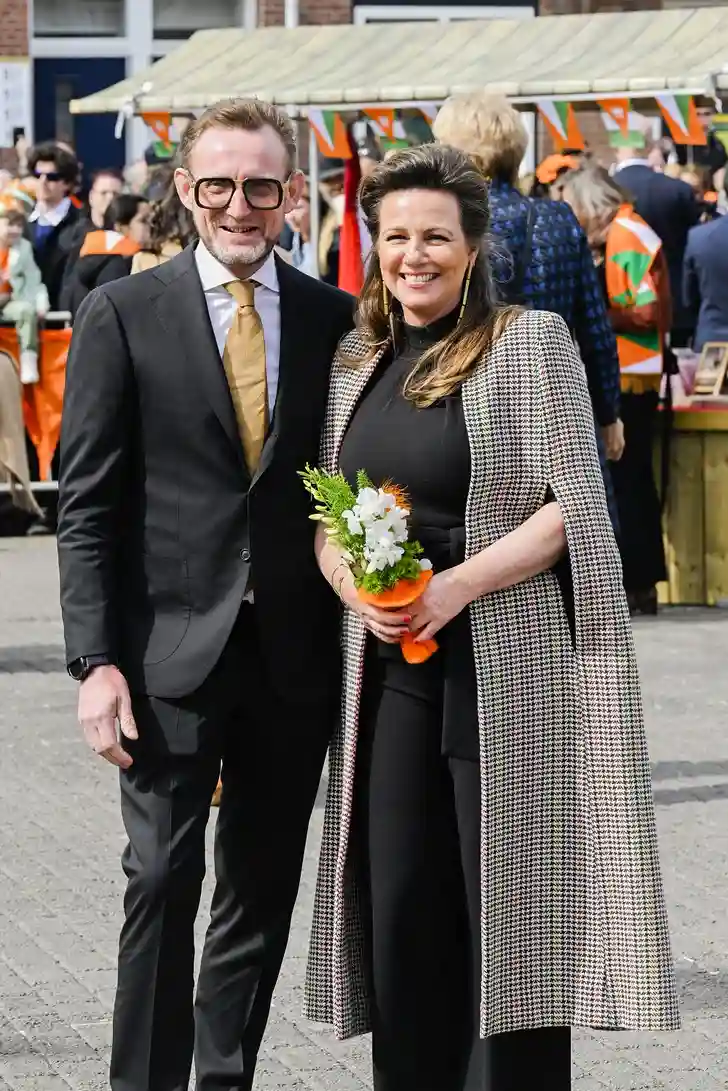 Prinses Anita koos voor zeer klassiek in zandkleuren (de jas is van Max&Co), prins Pieter-Christiaan maakte er met zijn das een oranjemomentje van.