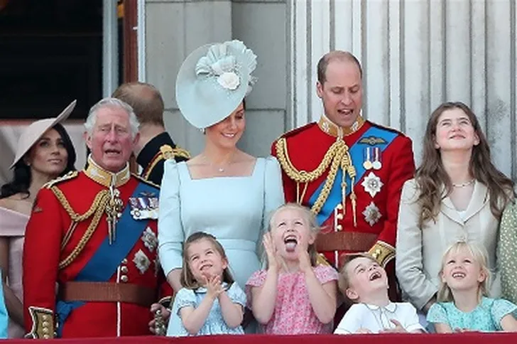 Tijdens het Trooping the Colour, waarbij vliegtuigen in formatie over Buckingham Palace vliegen bleek het voor de kleinsten moeilijk om hun aandacht erbij te houden.