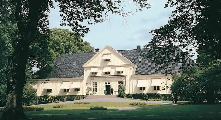 ...en herstelt op het koninklijke Bygdøy landgoed aan de rand van Oslo. Het is een van zijn favoriete plekken, gebouwd in 1733 en gerenoveerd in 2003.