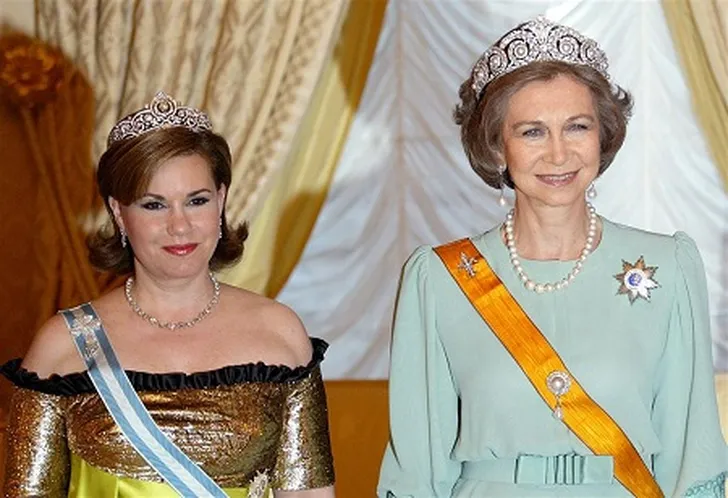 Het stijlvolle sieraad is oorspronkelijk van koning Felipes overgrootmoeder koningin Victoria Eugenia. Het werd door de jaren heen bij talloze gelegenheden gedragen door Sofia.