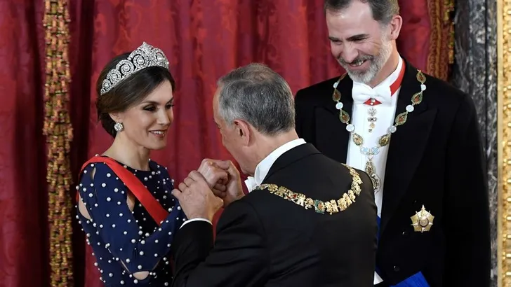 De Portugese president Marcelo Rebelo de Sousa kwam op bezoek bij het Spaanse koningspaar. Daar prijkte een prachtige tiara op het hoofd van Letizia. Geleend van haar schoonmoeder Sofia. Daarmee lijkt de Spaanse familie weer meer eenheid uit te stralen