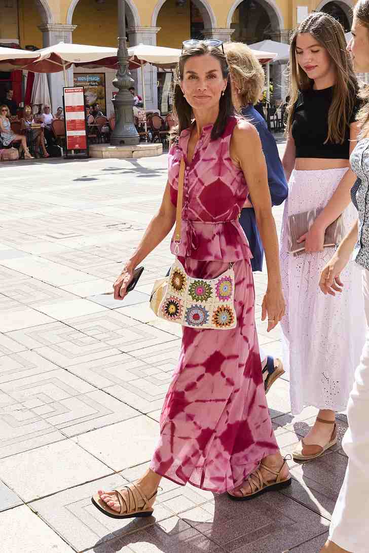 La Reina koos bijvoorbeeld tijdens een shopsessie in de hoofdstad voor een verrassend geraffineerde jurk in levendige roze tinten. Haar gehaakte tas en trendy taupe teenring sandalen haken helemaal in op de boho vibes. Met eenvoudige oorbellen en haar lokken in bedwang gehouden door een zonnebril van Carolina Herrera ziet ze er verzorgd uit, maar toch ontspannen genoeg voor wat sightseeing.