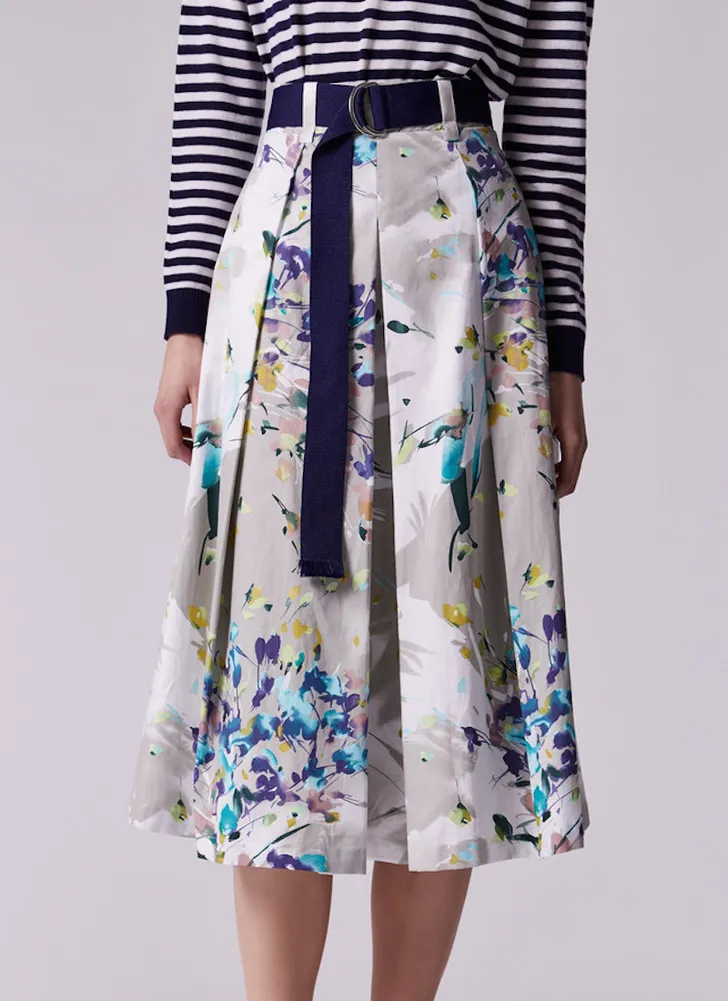 De bloemenrok met zakken en een opvallende riem is van het Spaanse label Adolfo Dominguez, en kost normaal gesproken 180 euro. Maar momenteel is de rok in de sale verkrijgbaar, met 50% korting.