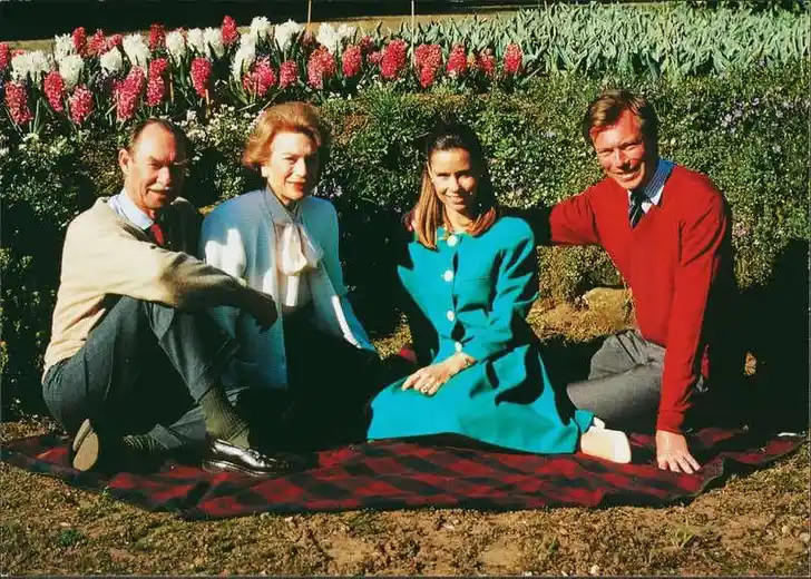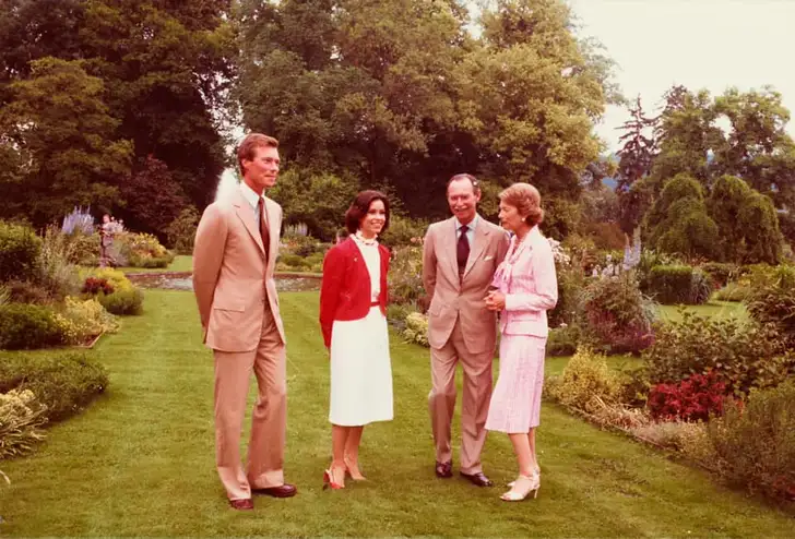 De familie De Nassau was niet verrukt over de keuze van Henri en Maria Teresa had het niet makkelijk, al ziet het er op dit kiekje nog best gezellig uit: de dame rechts is Charlotte, de oma van Henri, en die was aanzienlijk moderner ingesteld dan de rest.