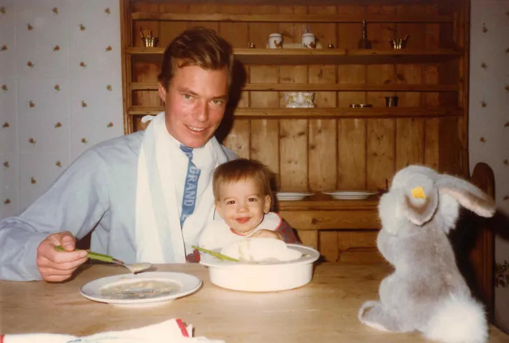 Hier Henri in 1982, met een groothertogelijke theedoek om zijn nek: Guillaume was nogal een... enthousiaste eter.