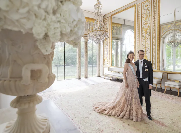 Als je daar nog niet warm voor loopt, dan toch zeker wel voor de foto's die het prachtige koppel maakte om hun jubileum te vieren. Een sprookje in de tuinen en het paviljoen van Slot Haga. Outfitdetail: de blauwe jurk is van H&M Conscious (je bent een Zweedse queen of niet), de droom in blush komt van Elie Saab en droeg Victoria de avond voor haar jawoord. Awwww.