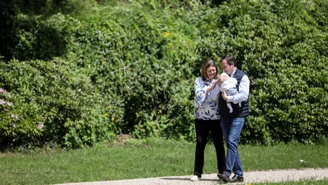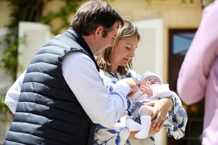 Maar het hoogtepunt was toch het moment dat prinses Stéphanie (in een top van Carolina Herrera) zich even bij hen voegde met hun zoontje Charles, die vredig door de opnamen heen sliep.