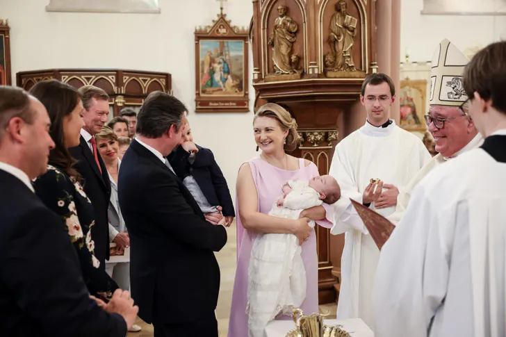 De families De Nassau en de Lannoy zijn zaterdag bij elkaar gekomen voor de doop van babyprins François, het tweede zoontje van erfprins Guillaume en zijn vrouw Stéphanie.